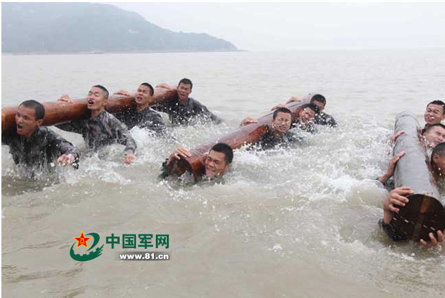 海上圓木訓(xùn)練個(gè)個(gè)都是拼命三郎。鄭希勝 攝