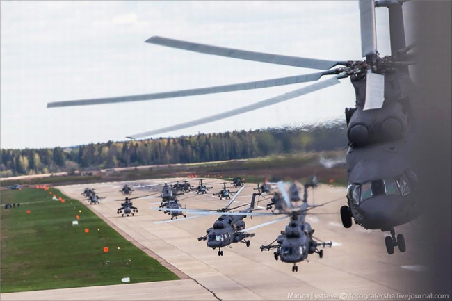 俄羅斯紅場(chǎng)閱兵彩排:直升機(jī)群密集升空?qǐng)雒鎵延^