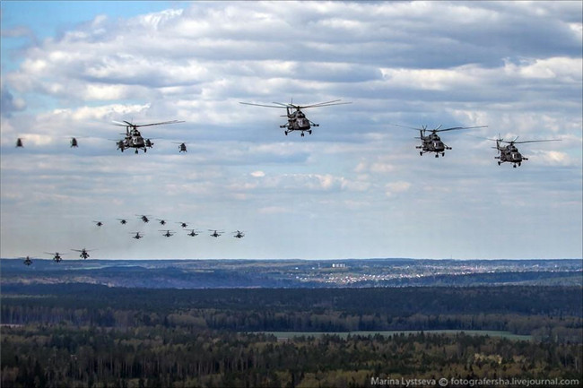 俄羅斯紅場閱兵彩排:直升機群密集升空場面壯觀