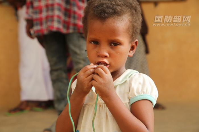 這個(gè)小女孩把塑料繩當(dāng)成玩具,時(shí)不時(shí)會(huì)用嘴巴咬一下。
