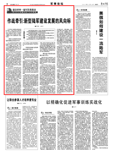 習(xí)主席在多個(gè)重要場(chǎng)合都強(qiáng)調(diào),要努力建設(shè)一支強(qiáng)大的現(xiàn)代化新型陸軍。當(dāng)今世界,軍事科技日新月異,戰(zhàn)爭(zhēng)形態(tài)、制勝機(jī)理飛速變化。新型陸軍只有鎖定“明天、后天戰(zhàn)爭(zhēng)”這個(gè)靶標(biāo),才能建設(shè)方向明、發(fā)展路徑清,才能走向未來。請(qǐng)關(guān)注今日出版的《解放軍報(bào)》的詳細(xì)報(bào)道——