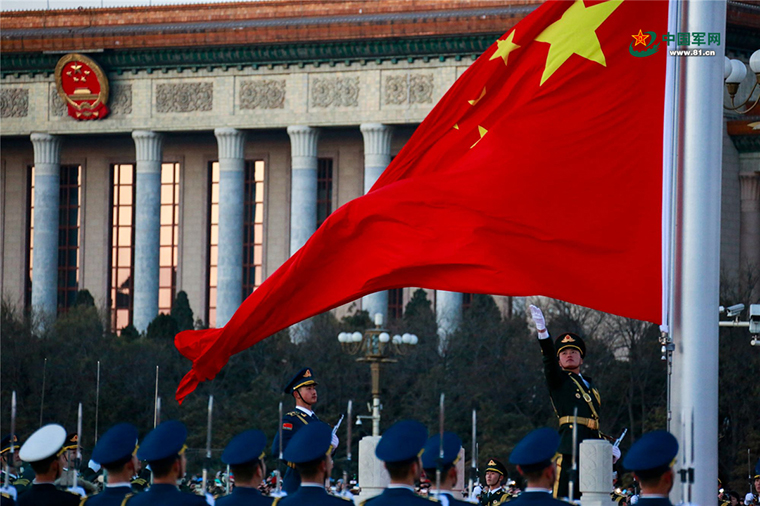 2018年1月1日清晨,天安門廣場,隨著升旗號角劃破長空,解放軍儀仗隊和軍樂團首次執(zhí)行的升國旗儀式正式開始。