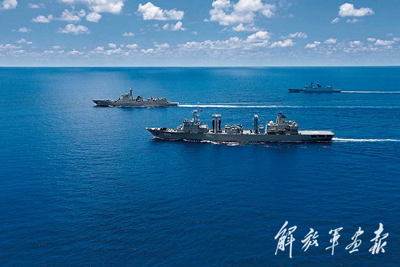 第20批護航艦隊——千島湖艦、濟南艦、益陽艦三艦編隊進(jìn)行反海盜演練。