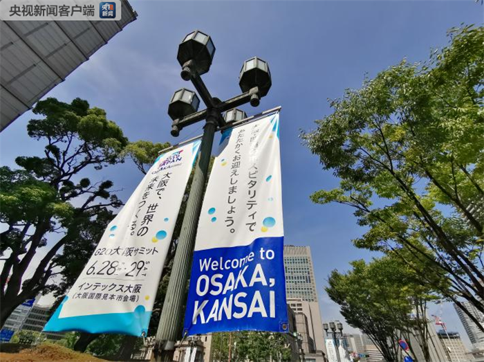 在大阪市政府附近的街道,隨處可見印有G20標(biāo)志的旗子(央視記者張曉鵬拍攝)。