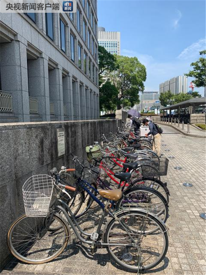 在大阪市政府門口停放著的自行車?!稌r政新聞眼》發(fā)現(xiàn),大阪很少見共享單車,基本都是自己所有(央視記者沈忱拍攝)。