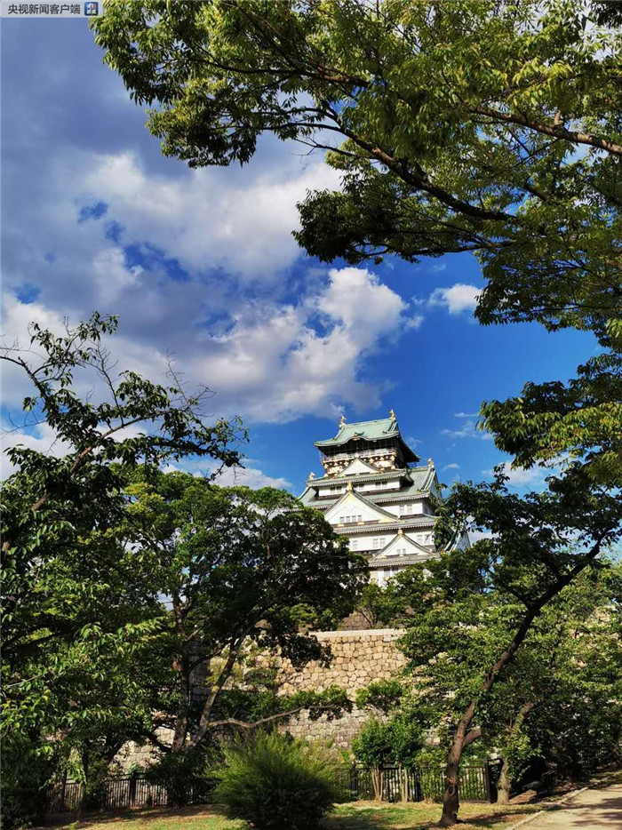 大阪城天守閣。天守閣是日本戰(zhàn)國(guó)時(shí)期修建的大型城堡,在軍事上有關(guān)樓和瞭望塔的作用。同時(shí),它也是城主的居住之地,象征著城主的政治權(quán)力和地位。現(xiàn)在的天守閣建成于1931年,是模仿豐臣秀吉時(shí)代的天守閣建造的(央視記者荊偉拍攝)。