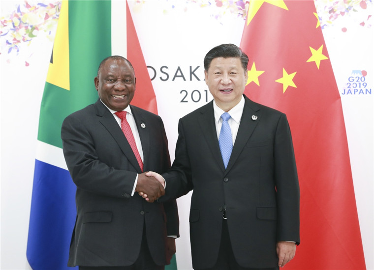 6月28日,國家主席習(xí)近平在大阪會見南非總統(tǒng)拉馬福薩。新華社記者 龐興雷 攝