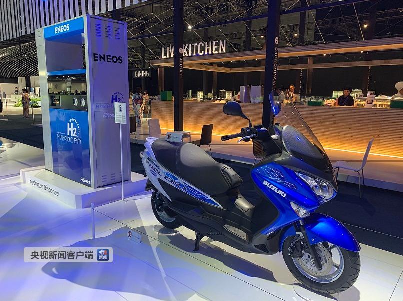 △氫氣加氣站和氫燃料電池摩托車。它使用的燃料是清潔能源,還可以在剎車和加速時做動力回收以提升續(xù)航里程,電池充滿一次的騎行距離是120公里。