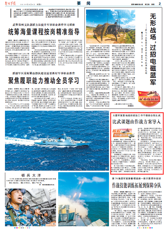 盛夏,火箭軍某基地在華東某訓練場擺下政治工作干部綜合性比武擂臺,百余名政治工作干部圍繞共同基礎、崗位基礎、崗位應用3個方面10余個課目展開激烈角逐。每個課目都基于作戰(zhàn)需要設置,每個課題都由作戰(zhàn)方案導入。請關注今日《解放軍報》的報道——