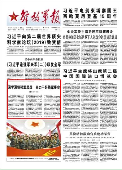 在全黨全軍深入開展第二批“不忘初心、牢記使命”主題教育之際,經(jīng)中央軍委批準,《習近平論強軍興軍(二)》印發(fā)全軍。這對于牢固確立習近平強軍思想在國防和軍隊建設(shè)中的指導(dǎo)地位,更好以理論滋養(yǎng)初心、引領(lǐng)使命,凝聚起堅定不移走中國特色強軍之路、努力開創(chuàng)強軍事業(yè)新局面的磅礴力量,具有十分重要的意義。請關(guān)注今日《解放軍報》的評論員文章——