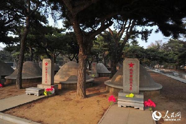陵園內(nèi)的黃繼光、孫占元等烈士的墓。王 磊攝