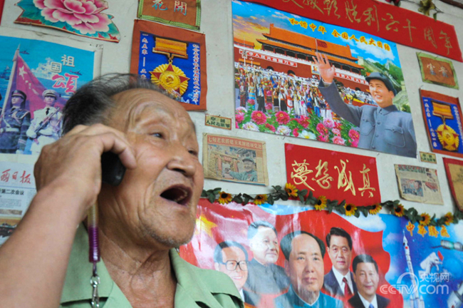 2013年7月23日,山西運(yùn)城,志愿軍老兵段亂亂在家中打電話。