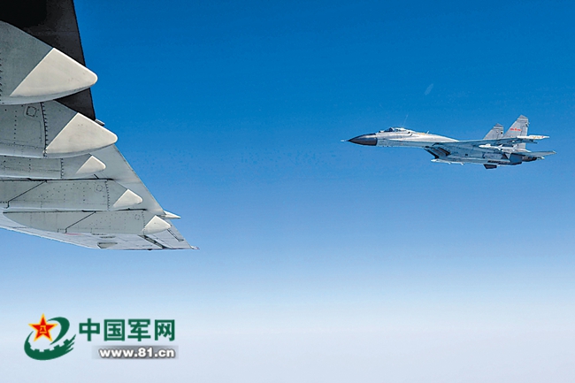 3月20日,我軍殲-11B戰(zhàn)機為接運烈士遺骸回國的專機護航。