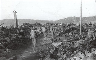 我志愿軍戰(zhàn)士沿著云山街道追殲逃敵。