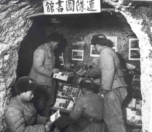 利用戰(zhàn)斗間隙,志愿軍在坑道中開展豐富多彩的文化生活。