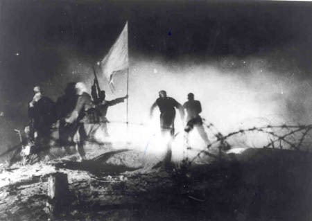志愿軍第39軍某部在反擊老禿山戰(zhàn)斗中,將勝利紅旗插上老禿山主峰。
