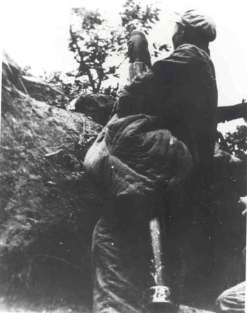 志愿軍炮手使用迫擊炮在游動(dòng)殺敵。