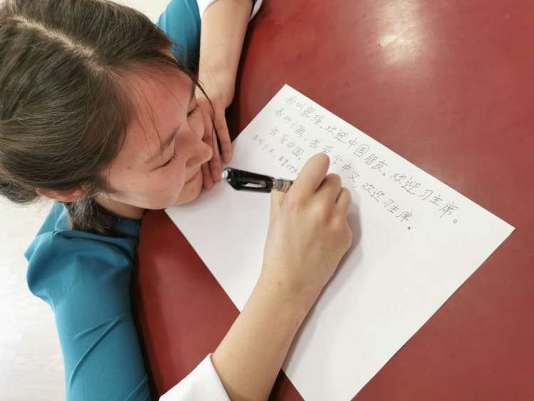 祁燕的學(xué)生們用中文寫下期待。(新華社記者 王申 攝)
