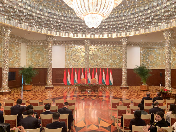 隨后兩國(guó)元首到二層會(huì)談廳進(jìn)行會(huì)談。這是繼頭一天晚上拉赫蒙在籌辦亞信峰會(huì)的繁忙之中專程到機(jī)場(chǎng)迎接后兩人再次見面。習(xí)近平說,“親望親好,鄰?fù)徍??!敝蟹綐芬娨粋€(gè)穩(wěn)定、發(fā)展、繁榮的塔吉克斯坦。拉赫蒙說,祝愿友好的中國(guó)永遠(yuǎn)國(guó)泰民安。兩國(guó)元首一致同意深化真誠(chéng)互信、合作共贏的全面戰(zhàn)略伙伴關(guān)系。