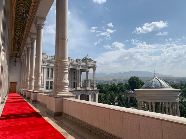 △納烏魯茲宮。當天,習近平還在這里會見了前來出席峰會的卡塔爾埃米爾塔米姆、土耳其總統(tǒng)埃爾多安。(央視記者段德文拍攝)