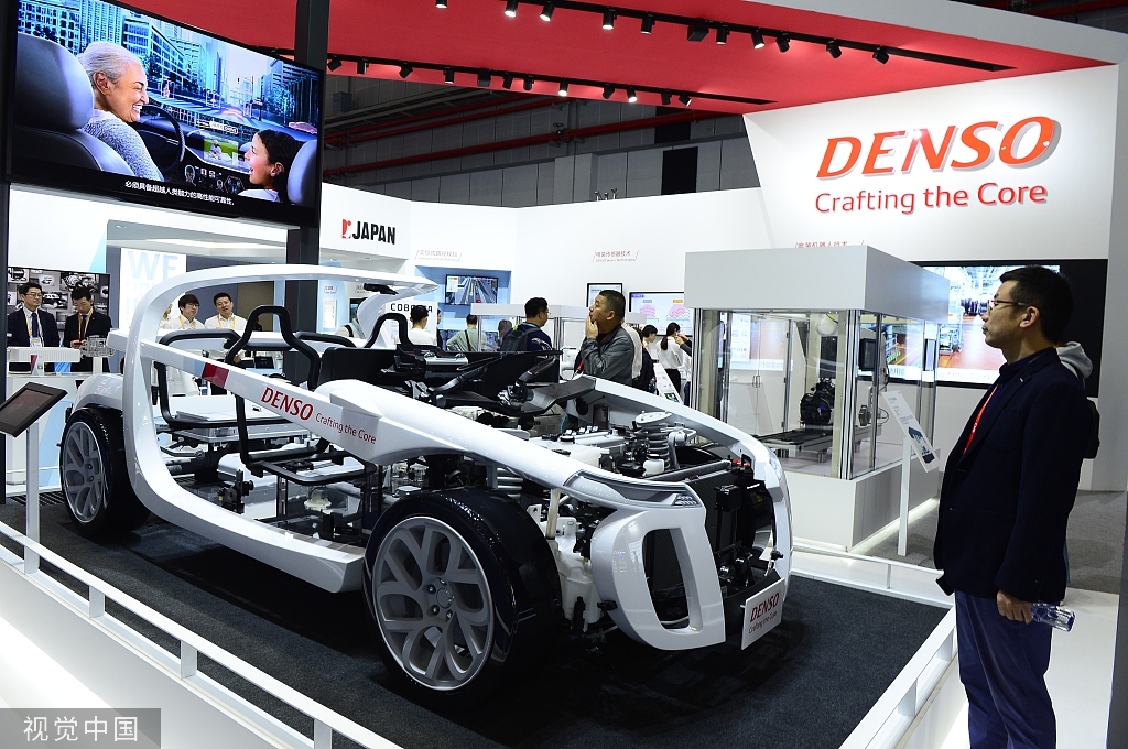 2018年11月7日,上海國(guó)家會(huì)展中心,首屆中國(guó)國(guó)際進(jìn)口博覽會(huì)汽車展區(qū)。日本電裝推出的概念車吸引不少觀眾參觀。圖源:視覺中國(guó)