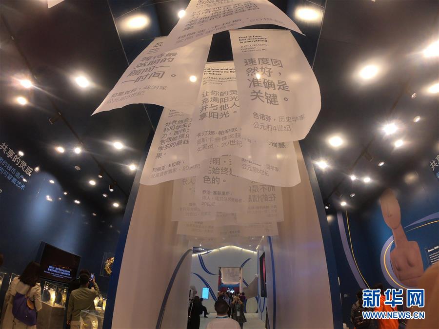 這是11月7日在第二屆進博會拍攝的希臘企業(yè)展臺。 愛琴海岸,古希臘文明跨越千年,成為孕育歐洲文明的搖籃。而在亞歐大陸的另一端,中華文明綿延傳承,成為東方文明的杰出代表。同為文明古國,中希友好交往源遠(yuǎn)流長,兩國民眾有著天然的親近感。在正在上海舉行的第二屆中國國際進口博覽會上,希臘作為主賓國參展,展示了其文化、旅游、航運、食品等領(lǐng)域的產(chǎn)品。 新華社記者 普布扎西 攝