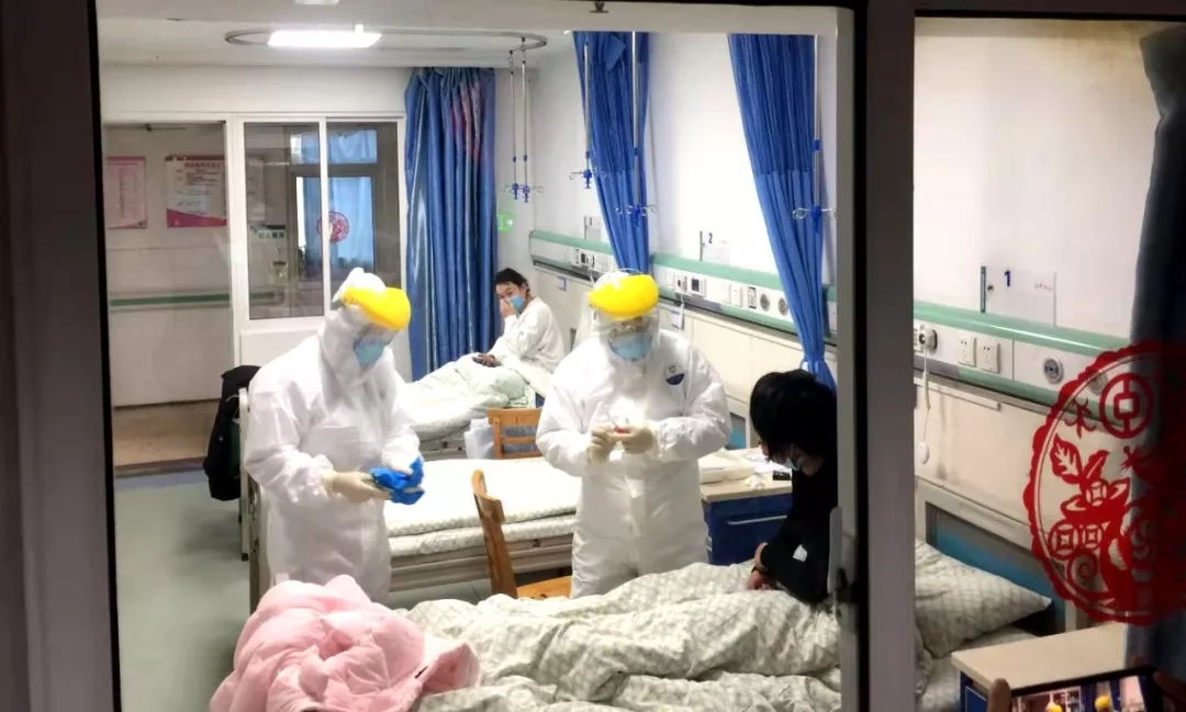 發(fā)熱病房,醫(yī)護(hù)人員穿戴整齊裝備
