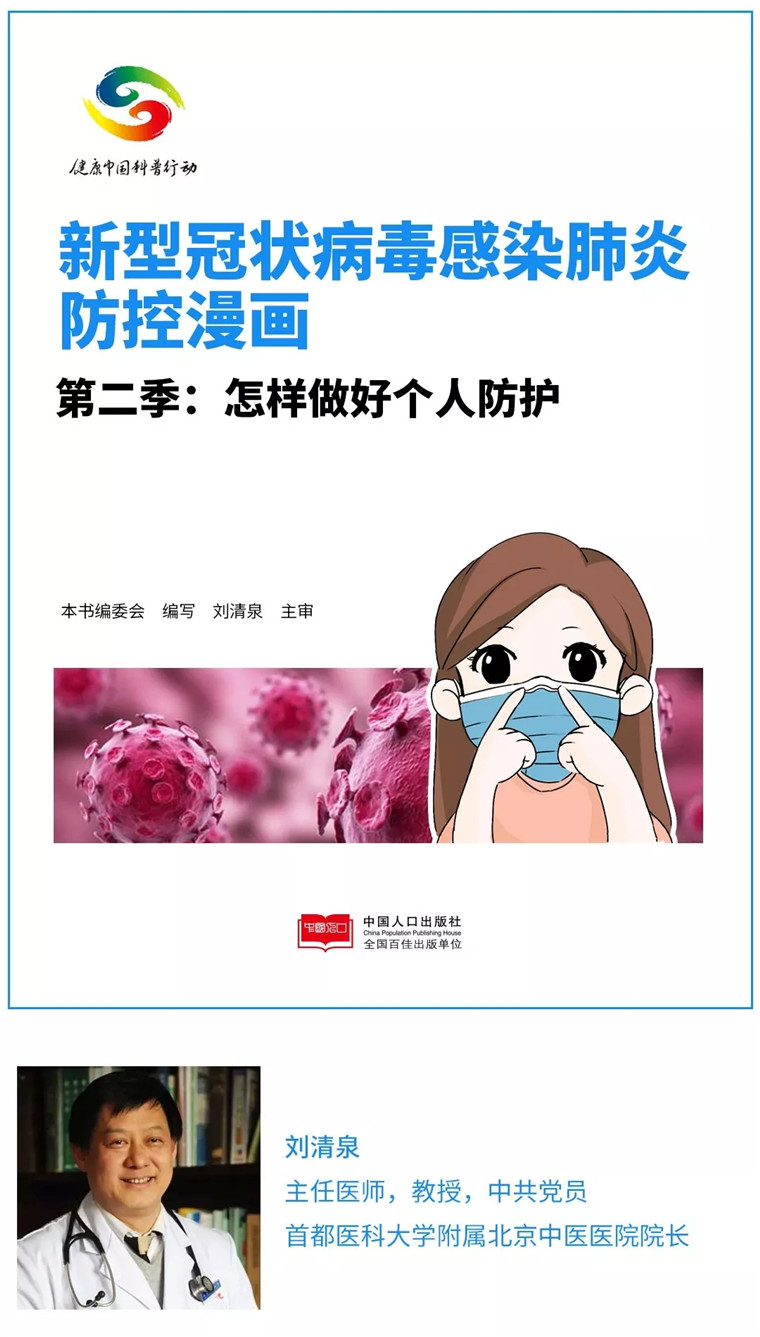 疫情就是命令,防控就是責(zé)任。為打贏新型冠狀病毒感染肺炎疫情防控阻擊戰(zhàn)、切實保障人民身體健康和生產(chǎn)生活秩序,遵照黨中央指示和國家衛(wèi)生健康委部署,中國人口出版社在健康科普專家委員會的指導(dǎo)下,聯(lián)合中華醫(yī)學(xué)著作網(wǎng)工作團隊編輯出版《新型冠狀病毒感染肺炎防控漫畫》。分5季推出:第一季,工作場所如何做好防護;第二季,怎樣做好個人防護;第三季,居家怎樣防護;第四季,新型冠狀病毒肺炎簡介;第五季,如何正確就醫(yī)及就醫(yī)注意事項。