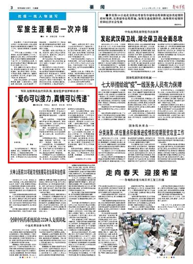 “烏大叔的身體好多了,呼吸機(jī)已經(jīng)摘掉,換上了普通氧氣管,可以做深呼吸,CT檢查顯示情況好轉(zhuǎn)……”得知自己曾經(jīng)護(hù)理的患者病情明顯好轉(zhuǎn),孫青說(shuō)起與烏大叔交往的經(jīng)歷。大年初三,軍隊(duì)支援湖北醫(yī)療隊(duì)護(hù)師孫青和同事第一次走進(jìn)漢口醫(yī)院重癥監(jiān)護(hù)室,看到病床上躺著戴面罩吸氧的重癥患者,心情異常沉重。請(qǐng)關(guān)注今日出版的《解放軍報(bào)》的詳細(xì)報(bào)道——