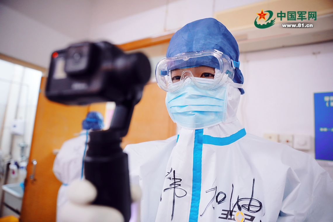 拍攝醫(yī)護人員更換防護服。(王震 攝)