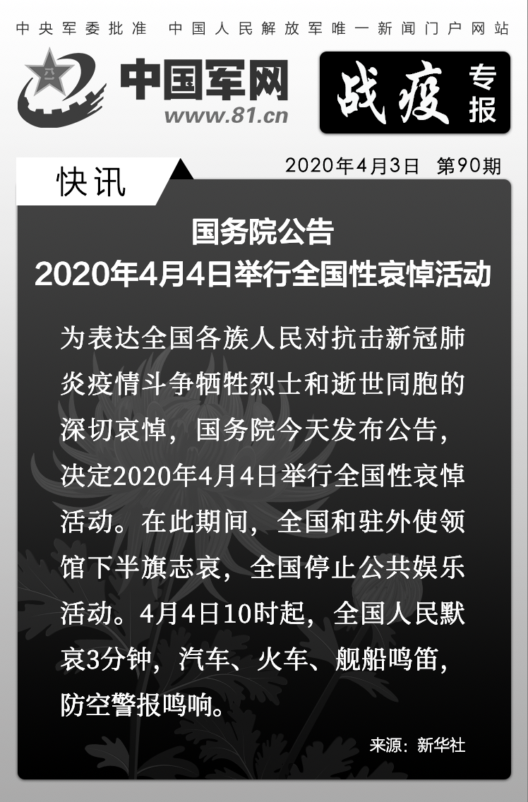 中國軍網(wǎng)戰(zhàn)疫專報(bào)|4月4日全國哀悼抗疫犧牲烈士和逝世同胞