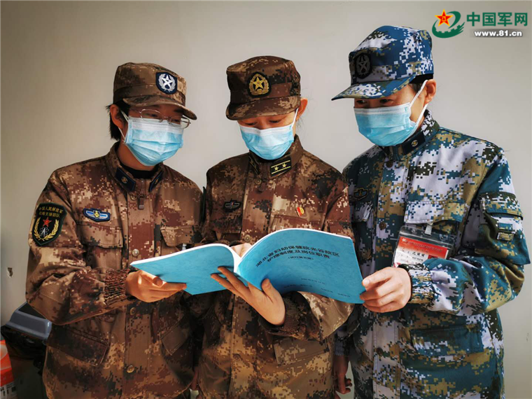 沈兆媛和戰(zhàn)友一起學(xué)習(xí)規(guī)章制度。