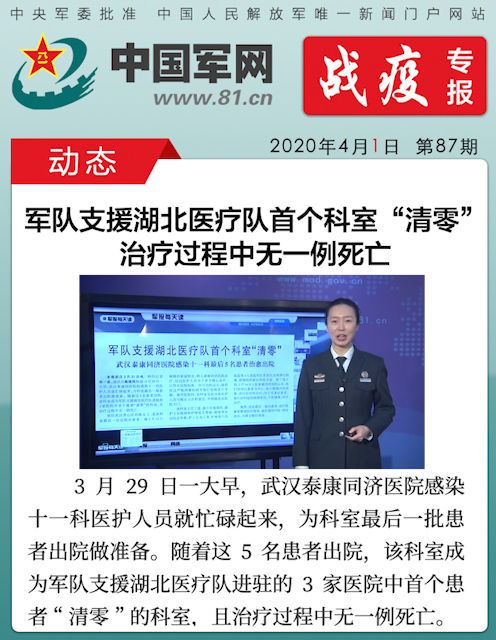 軍隊支援湖北醫(yī)療隊首個科室“清零”2020-04-01 15:07