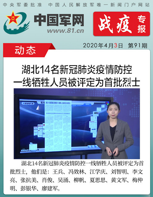 湖北14名新冠肺炎疫情防疫一線犧牲人員被評為首批烈士2020-04-03 15:40