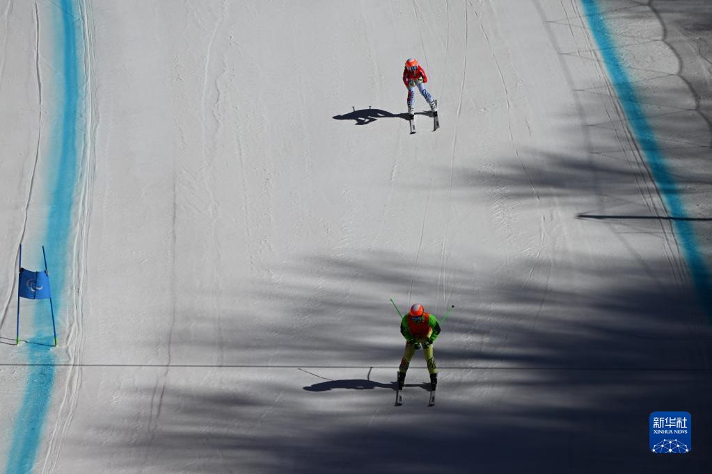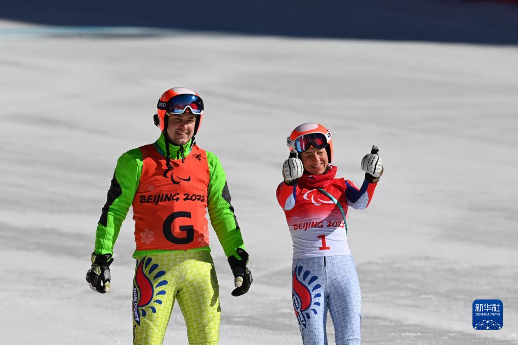 3月5日,斯洛伐克選手亨列塔·法爾卡索娃(上)和引導(dǎo)員馬丁·莫蒂卡在比賽中。新華社記者孫非攝