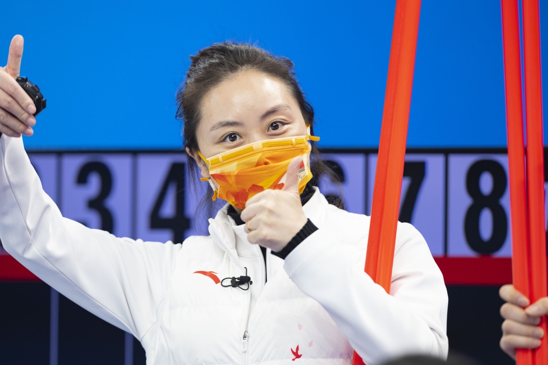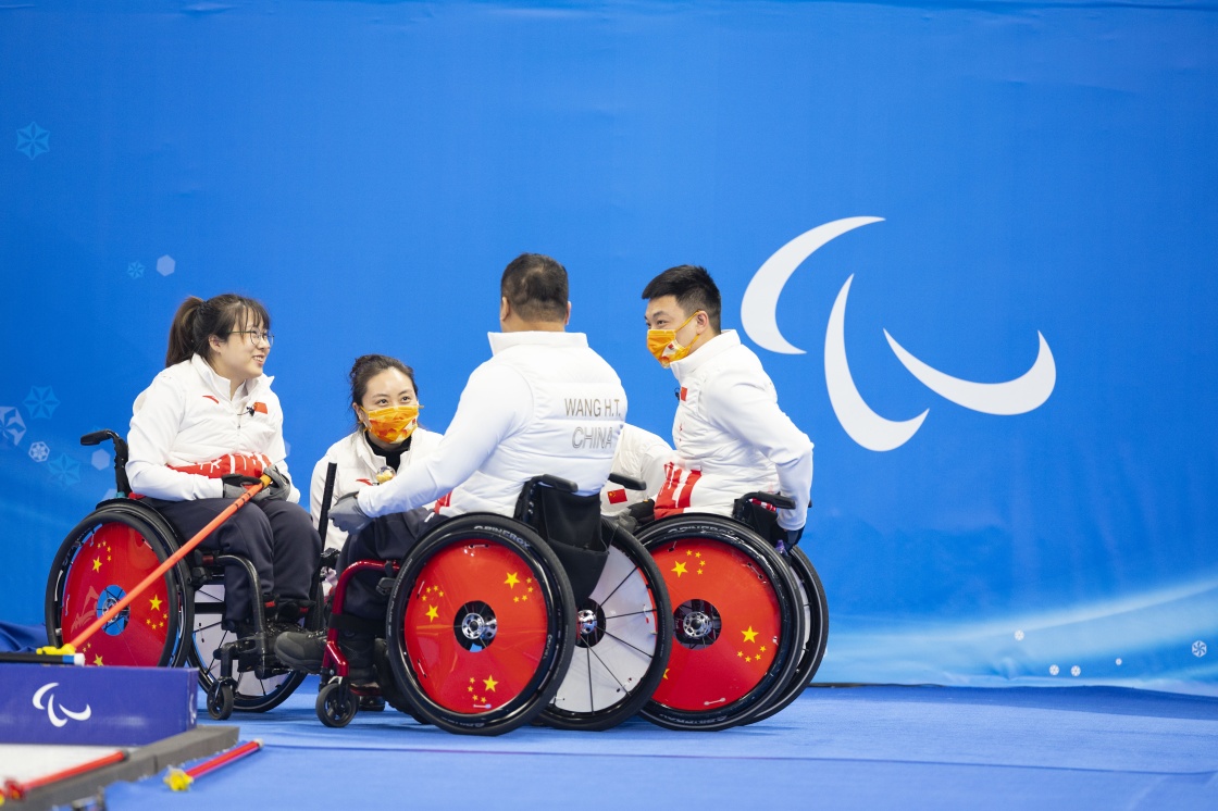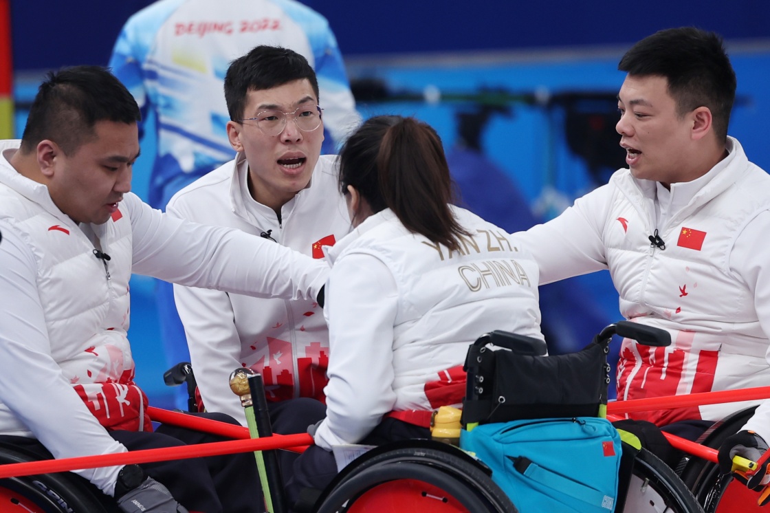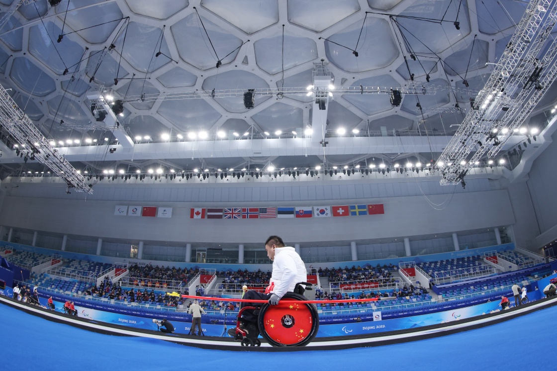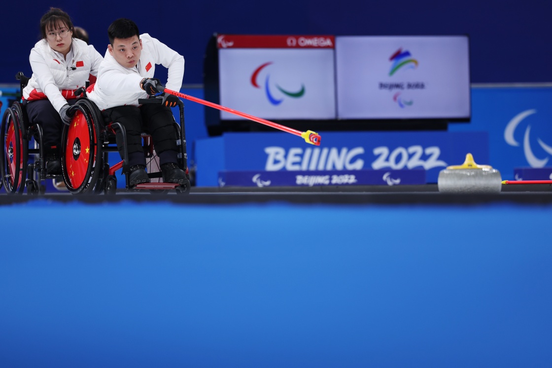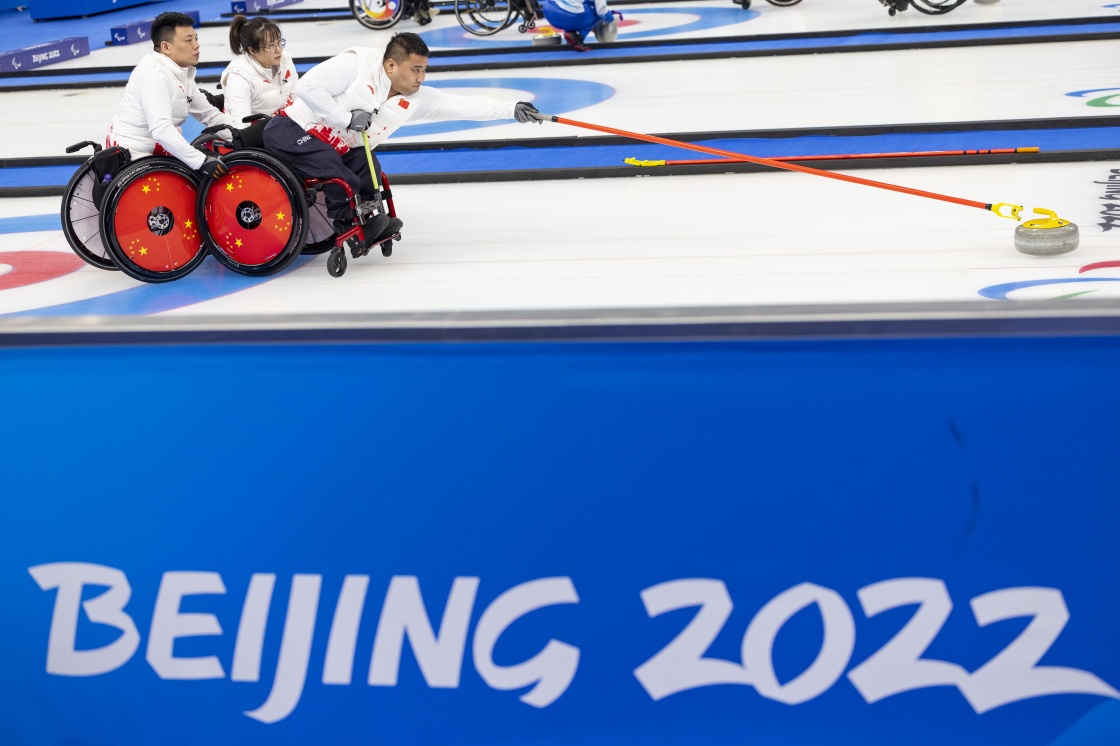 當日,在北京國家游泳中心“冰立方”舉行的北京2022年冬殘奧會輪椅冰壺循環(huán)賽中,中國隊以9比2戰(zhàn)勝拉脫維亞隊。