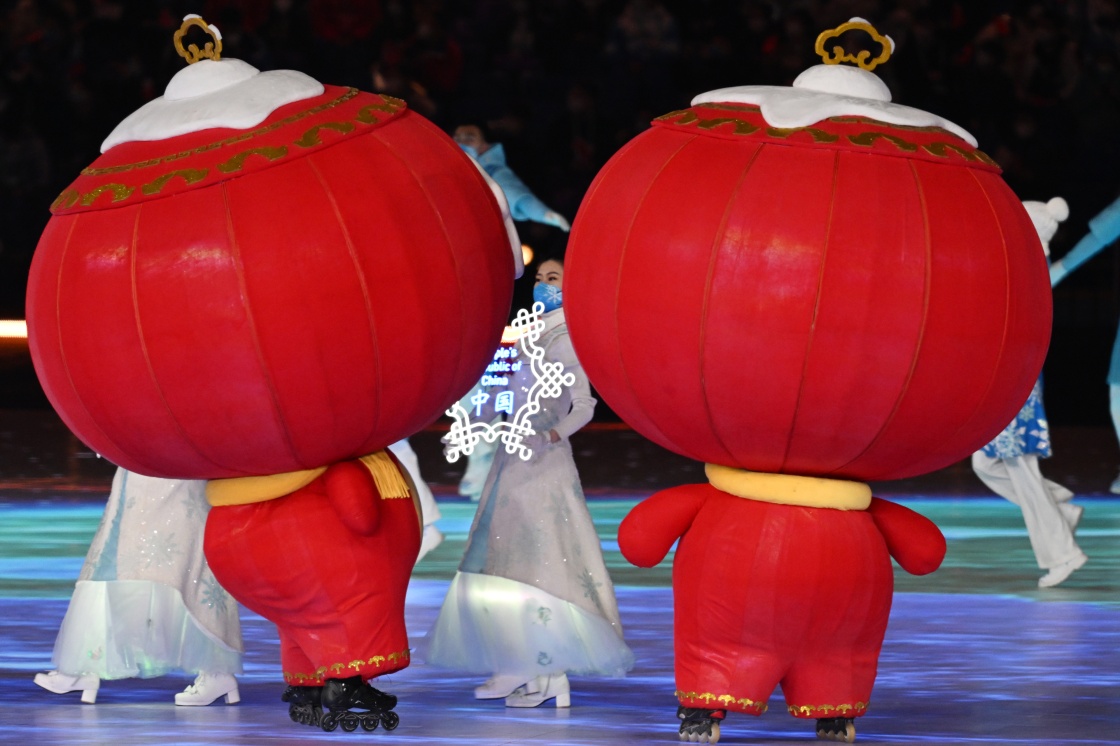 這是閉幕式上的北京冬殘奧會吉祥物“雪容融”。