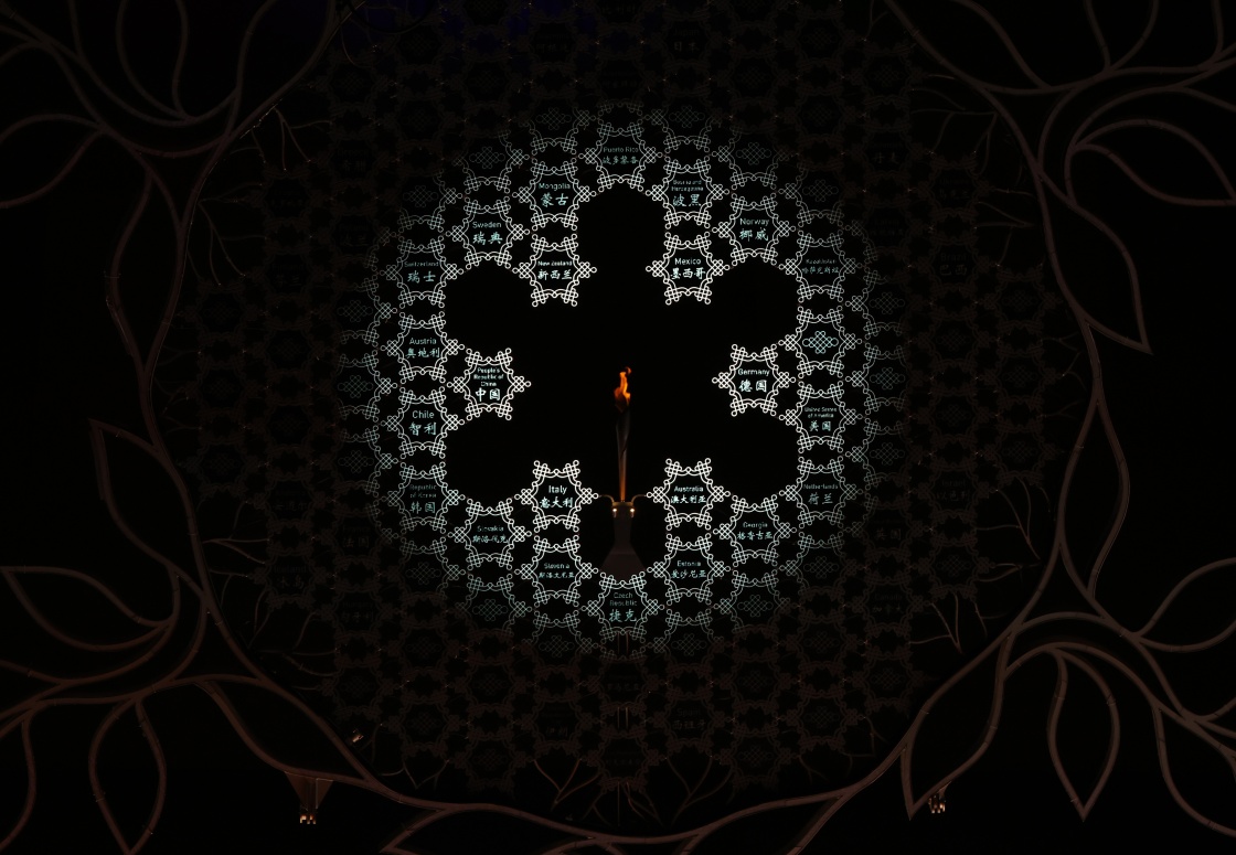 這是閉幕式上的熄滅主火炬環(huán)節(jié)。