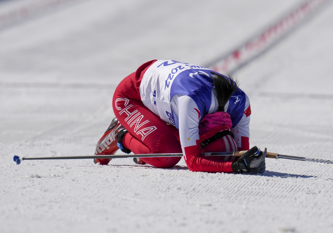 蜿蜒起伏的賽道長(zhǎng)達(dá)15公里,就像一場(chǎng)雪上馬拉松,對(duì)所有參賽選手來說都是極大的挑戰(zhàn)?!斑@不是我的主項(xiàng),但最起碼我堅(jiān)持下來了?!辟惡?,王躍累倒在終點(diǎn),休息一陣,最終在工作人員的攙扶下走下賽場(chǎng)。