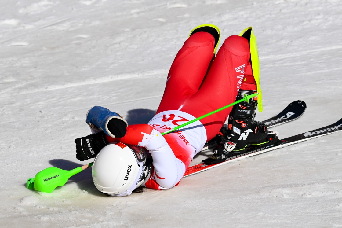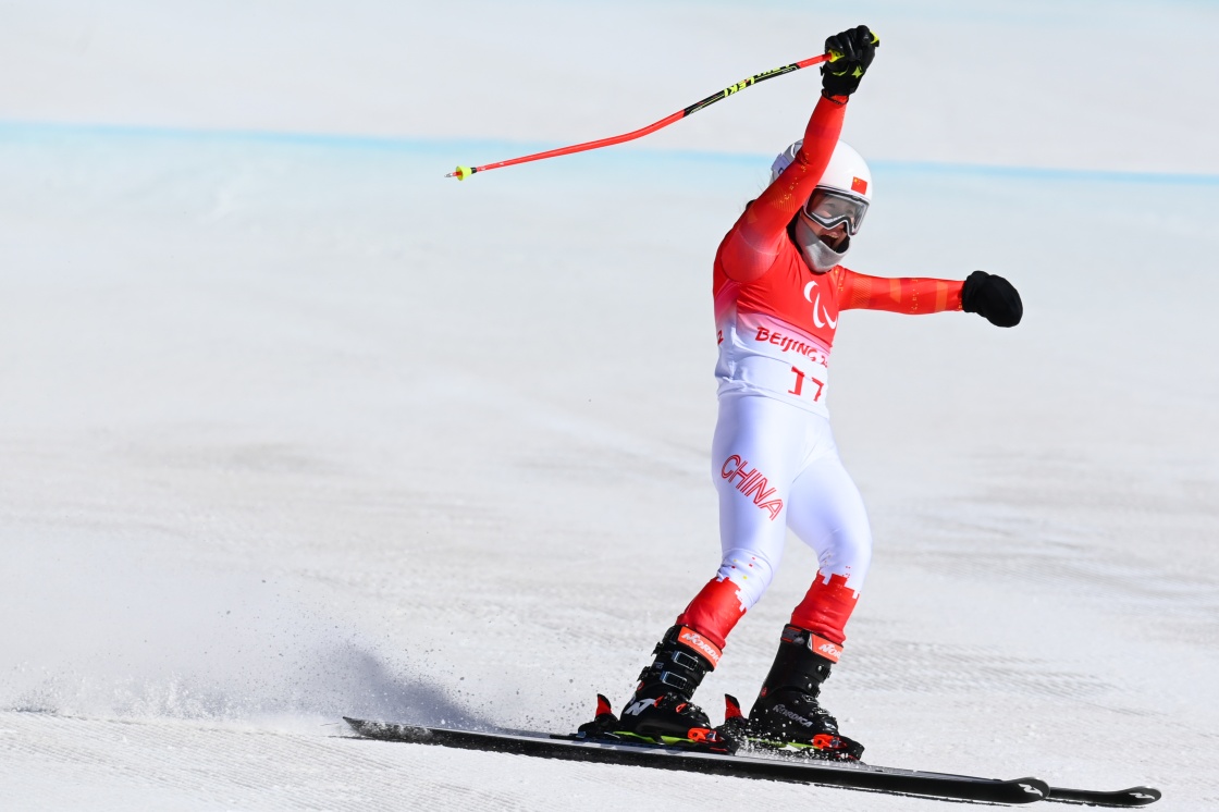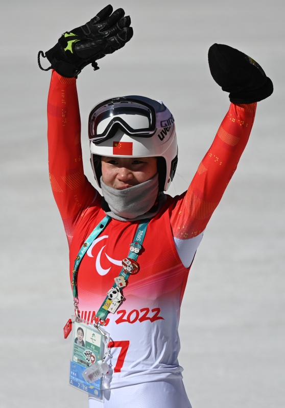 3月7日,張夢秋在北京2022年冬殘奧會殘奧高山滑雪女子全能(站姿)比賽中,獲得亞軍。新華社記者 張晨霖 攝