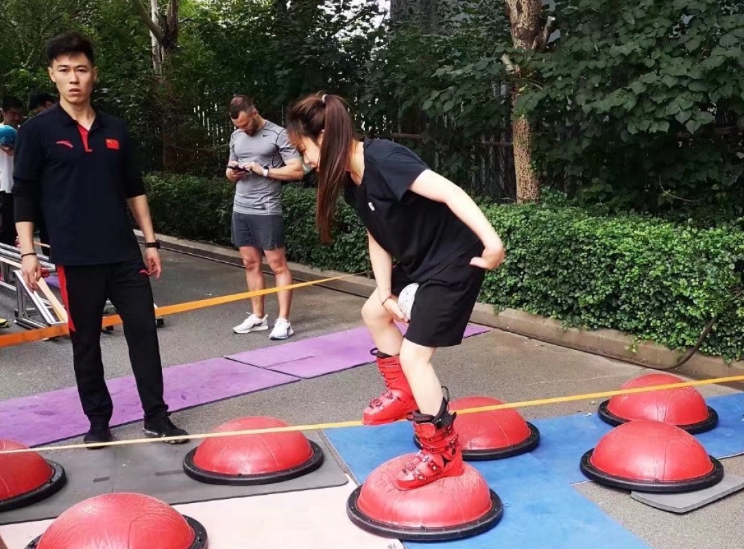 2021年夏天,張夢秋(右)在訓(xùn)練基地進行訓(xùn)練。新華社發(fā)(中國殘奧高山滑雪隊供圖)
