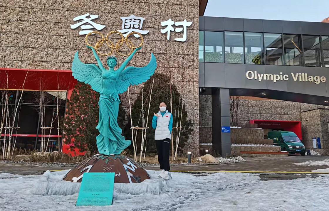 這是張夢秋在冬殘奧村留影。新華社發(fā)(中國殘奧高山滑雪隊供圖)