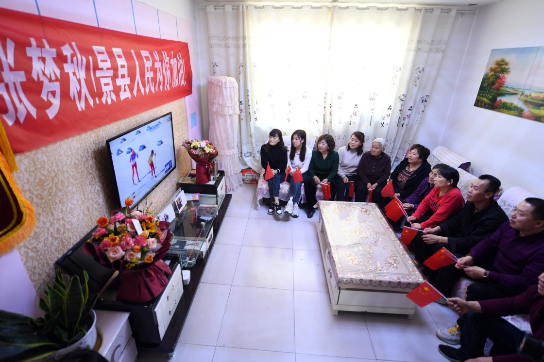3月7日,張夢秋的父母、親友在家中觀看她的比賽,當(dāng)天她獲得北京2022年冬殘奧會殘奧高山滑雪女子全能(站姿)亞軍。新華社發(fā)(受訪者供圖)