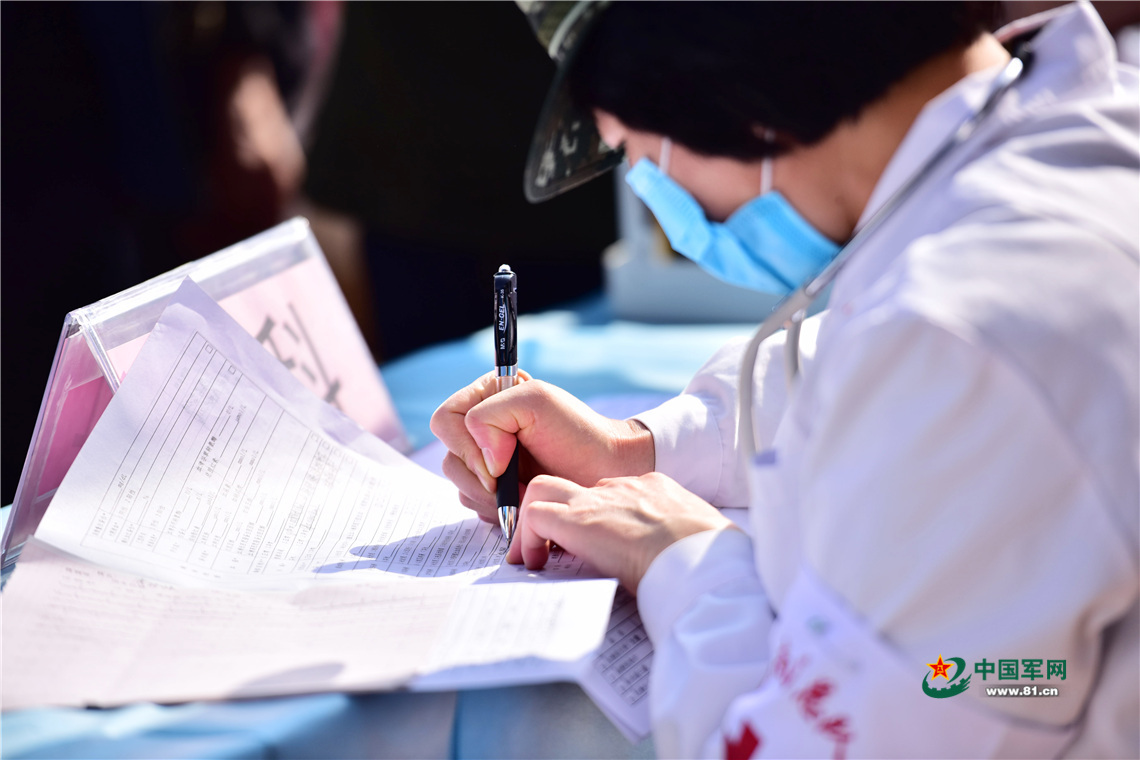 軍醫(yī)在記錄每名群眾就診情況,便于后期跟進(jìn)治療。任貴攝