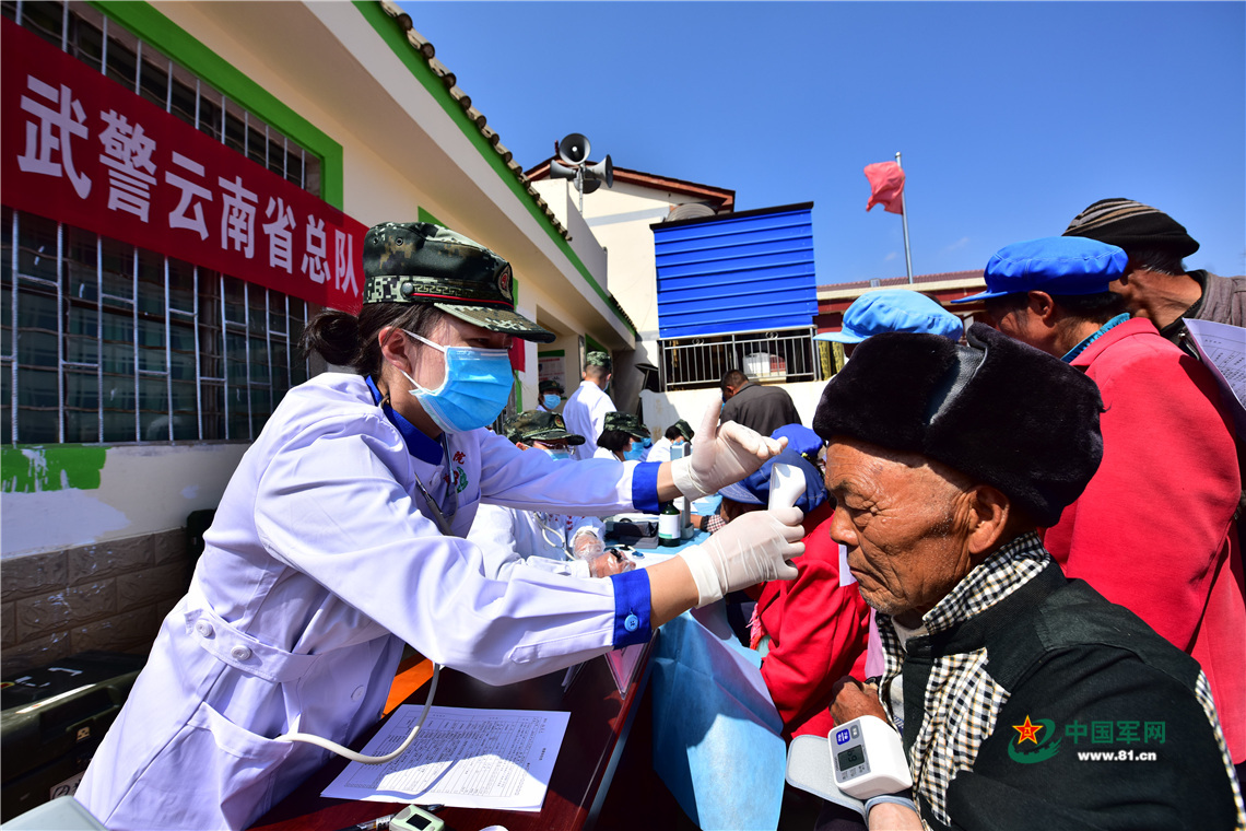 軍醫(yī)在為一名老人測量體溫。任貴攝
