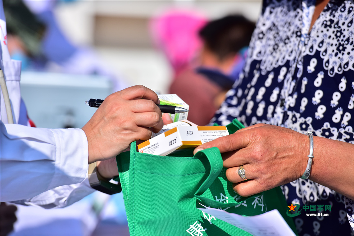 武警官兵向老百姓免費(fèi)發(fā)放常用藥品。任貴攝