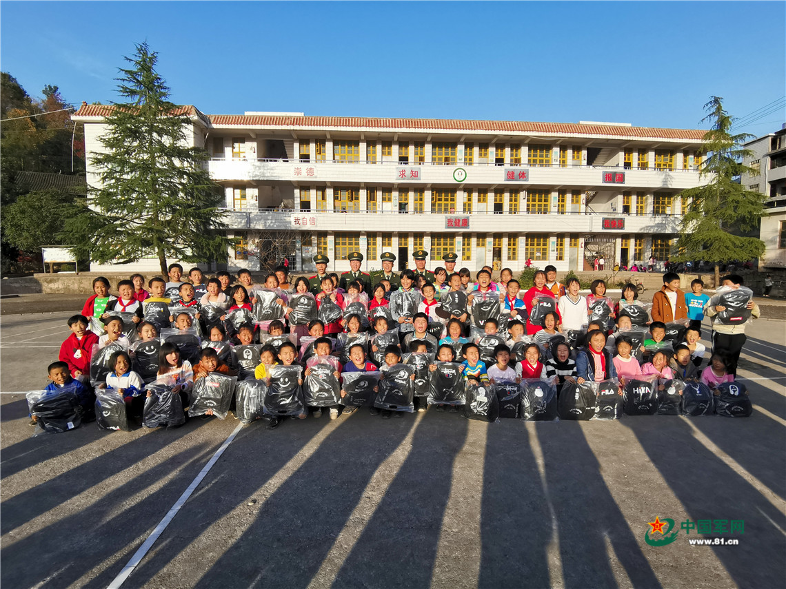 武警官兵在桑植縣空殼樹鄉(xiāng)中心小學(xué)給同學(xué)們送來學(xué)習(xí)用品。