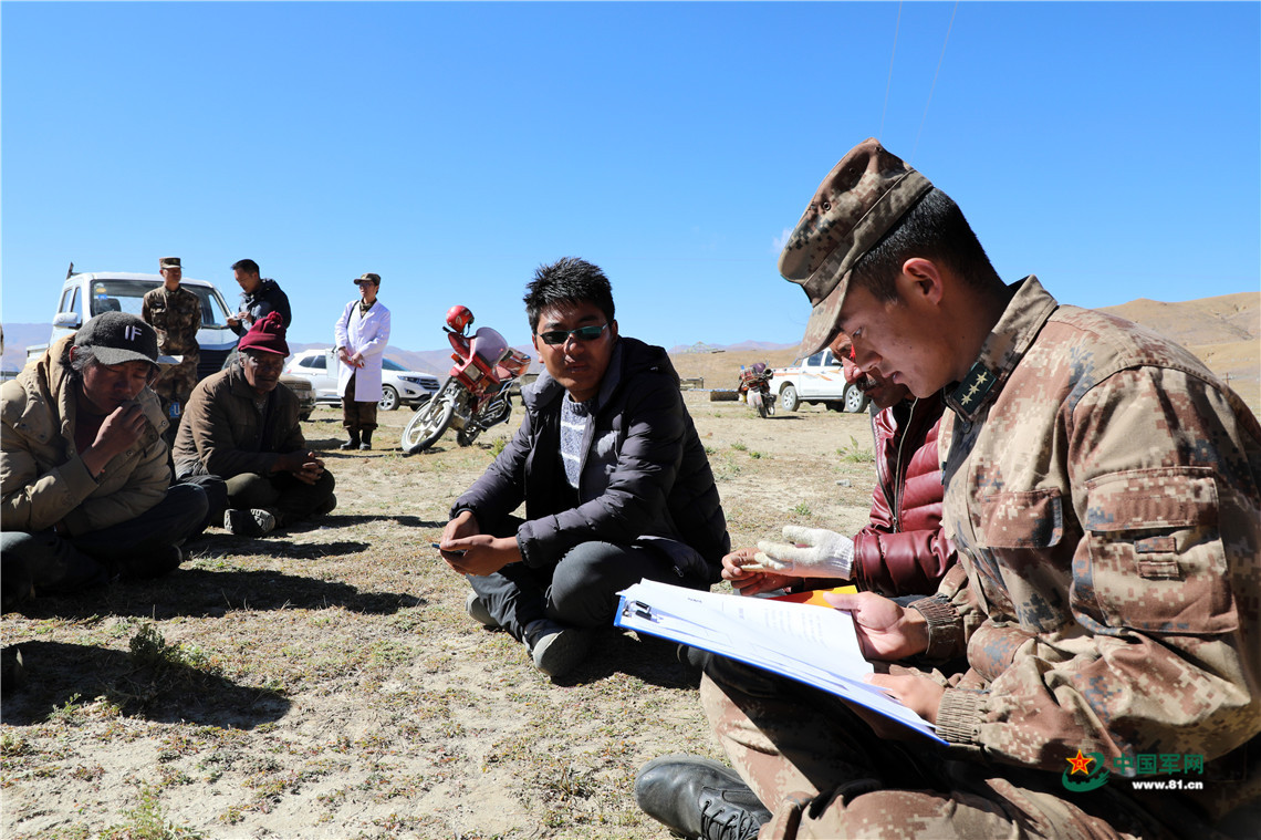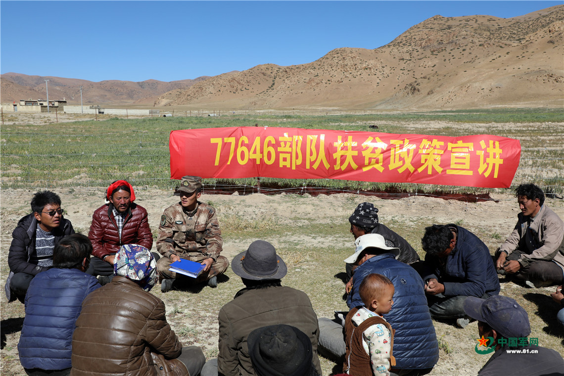部隊(duì)官兵到牧區(qū)開展扶貧政策宣講。