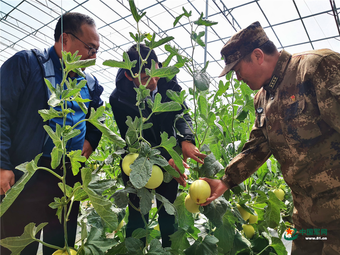 在部隊(duì)幫扶建設(shè)的溫室內(nèi),蔬菜瓜果長勢(shì)喜人。