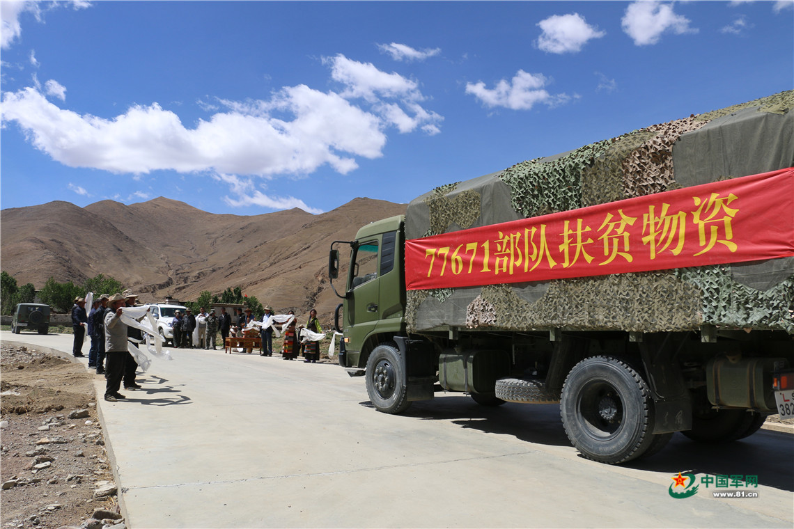 官兵為貧困村送去扶貧物資。肖揚(yáng) 攝